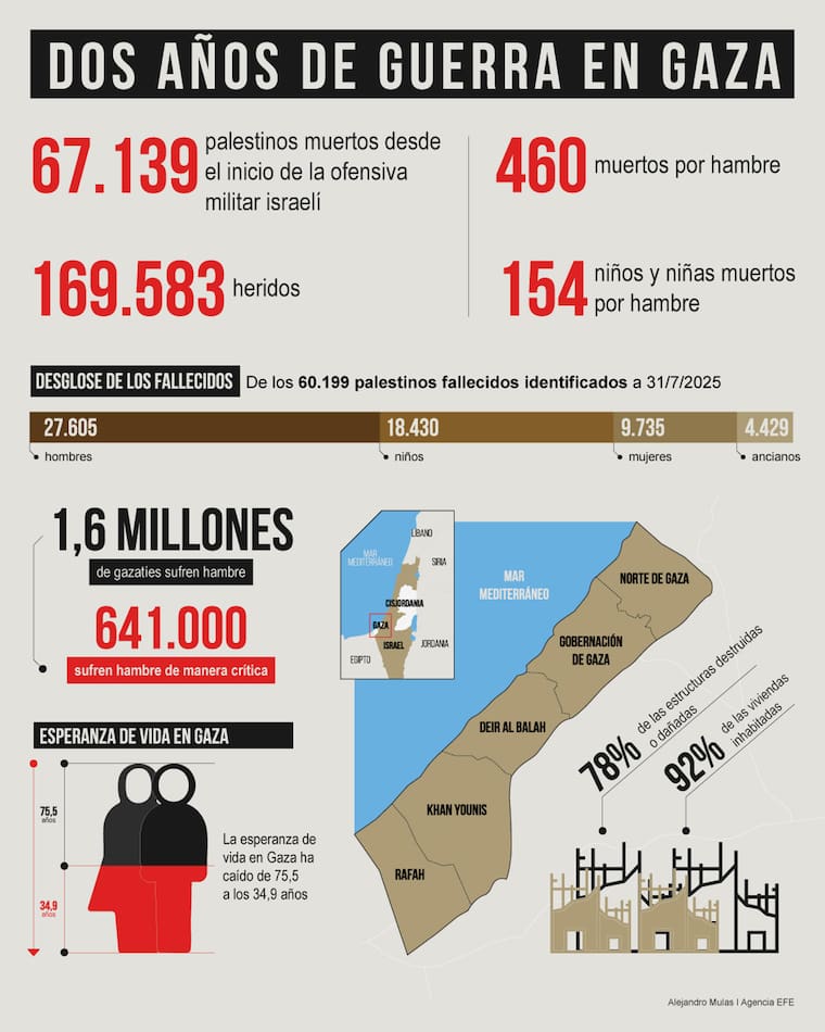 Irene Escudero/EFEEl próximo 7 de octubre se cumplirá el segundo aniversario del ataque de Hamas contra Israel de 2023 y la posterior ofensiva del Ejercito israelí, que ha matado a más de 67.000 palestinos en Gaza.