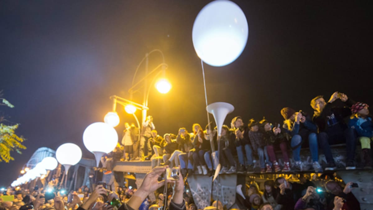 Los globos, que se había distribuido siguiendo el antiguo trazado del muro por la ciudad, unos quince kilómetros, fueron uno a uno elevándose al cielo ya a oscuras de Berlín, mientras la Staatskapelle interpretaba la Novena Sinfonía de Beethoven bajo la batuta del director argentino-israelí Daniel Barenboim.