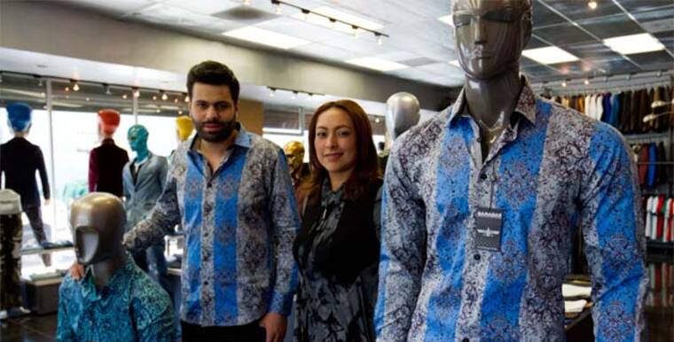 El cofundador de la marca Barabas, Shawn (i) y la gerente de tienda, Sandra Macía.