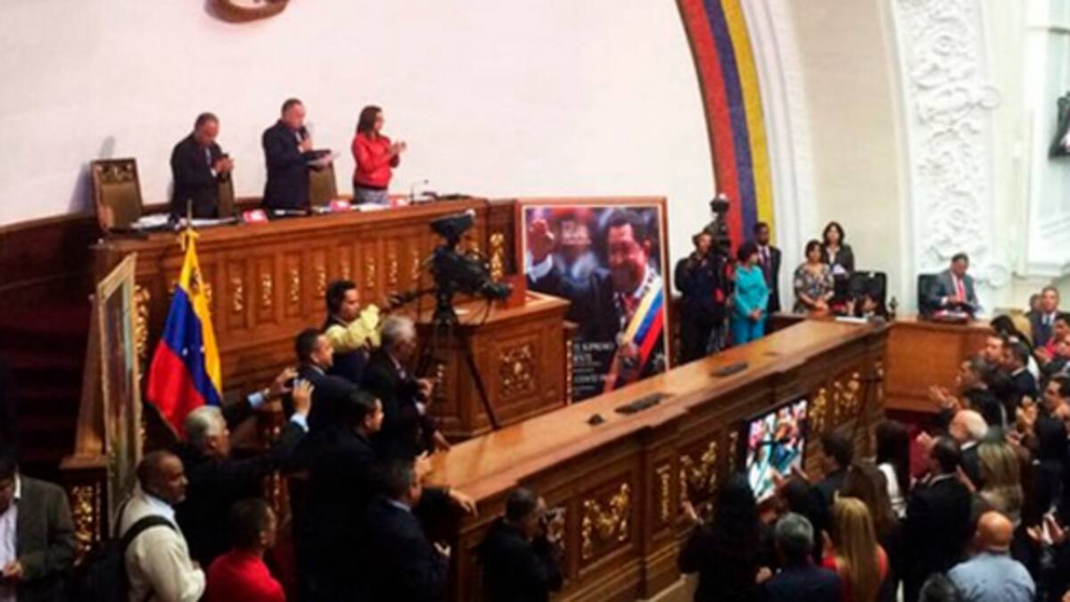 En el interior del Hemiciclo del Parlamento fueron retirados los cuadros del prócer independentista Simón Bolívar y del fallecido presidente Hugo Chávez.