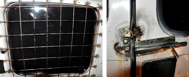 La ventana y el cerrojo de la furgoneta estaban soldados