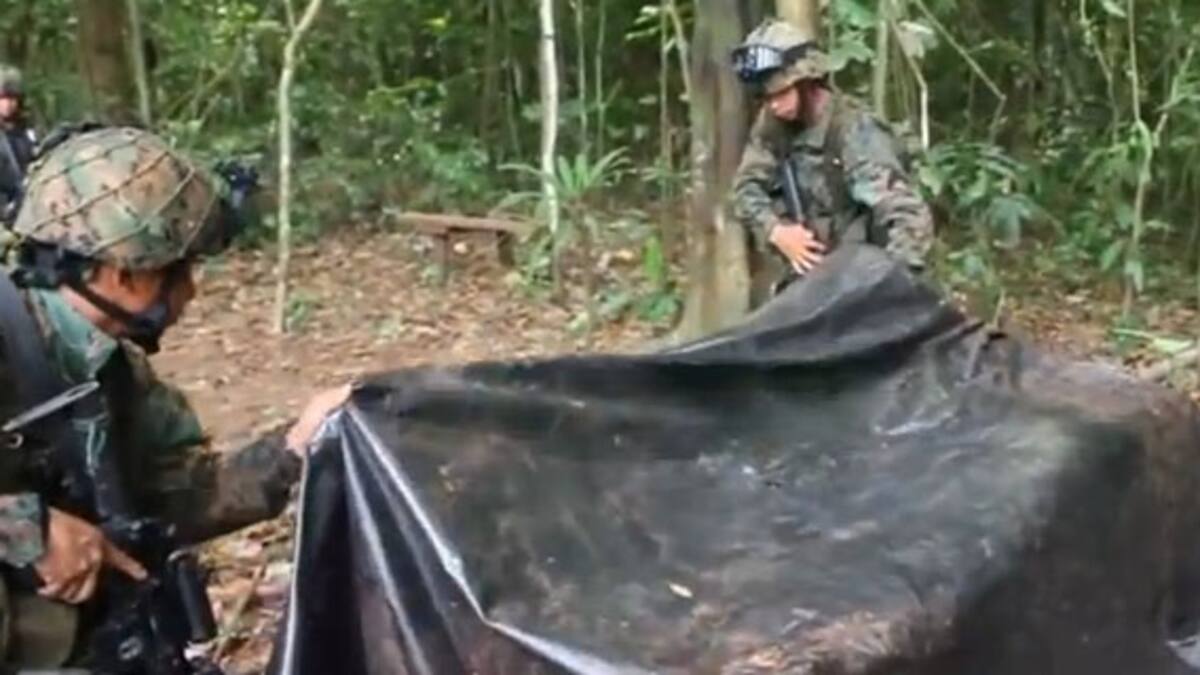 Se encontraron 'piezas de fusiles de asalto, municiones calibre M-16, una planta eléctrica, un torno hidráulico, aceites, grasas y otros materiales que se presume eran utilizados para la elaboración de armas de guerra, además había una cocina, un puesto de atención médica y uno de descanso, en el cual se albergaban miembros del Frente 57 de las FARC', detalla.