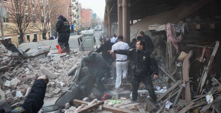 Un derrumbe de dos edificios en el barrio de Harlem, en Nueva York, Estados Unidos, debido a una explosión por una fuga de gas, ha causado la muerte de al menos dos personas, así como más de 18 heridos y varios desaparecidos. Bomberos trabajan en la extinción de la conflagración.