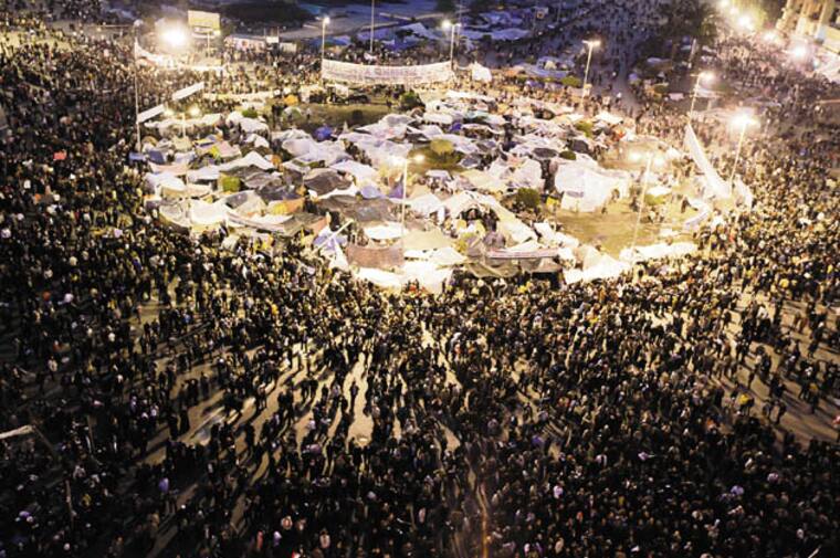 Los egipcios que se manifiestan en la plaza Tahrir de El Cairo desde hace catorce días aseguran que no se moverán de allí hasta que el presidente del país, Hosni Mubarak, abandone el poder.
