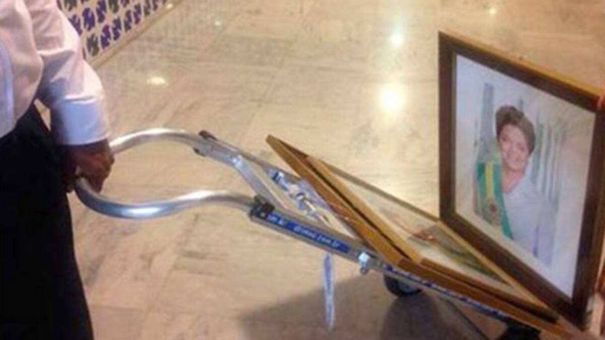 Los retratos oficiales de Dilma Rousseff con la banda presidencial comenzaron este miércoles a ser retirados de los despachos del palacio de Planalto, sede del Ejecutivo brasileño, un par de horas después de ser destituida como mandataria del país.