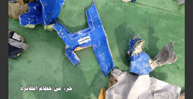 Fragmentos del avión con la marca de la aerolínea egipcia Egyptair, partes de asientos y objetos personales de los pasajeros son algunos de los restos recuperados por las fuerzas navales egipcias.