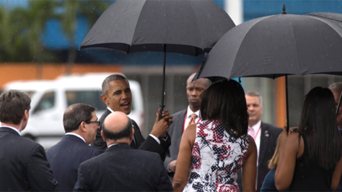 En el aeropuerto, la familia Obama junto con los funcionarios, legisladores y empresarios norteamericanos que llegaron para la visita de dos días, fueron recibidos por el ministro de Asuntos Exteriores cubano, Bruno Rodríguez, y otros altos funcionarios y diplomáticos del gobierno local.