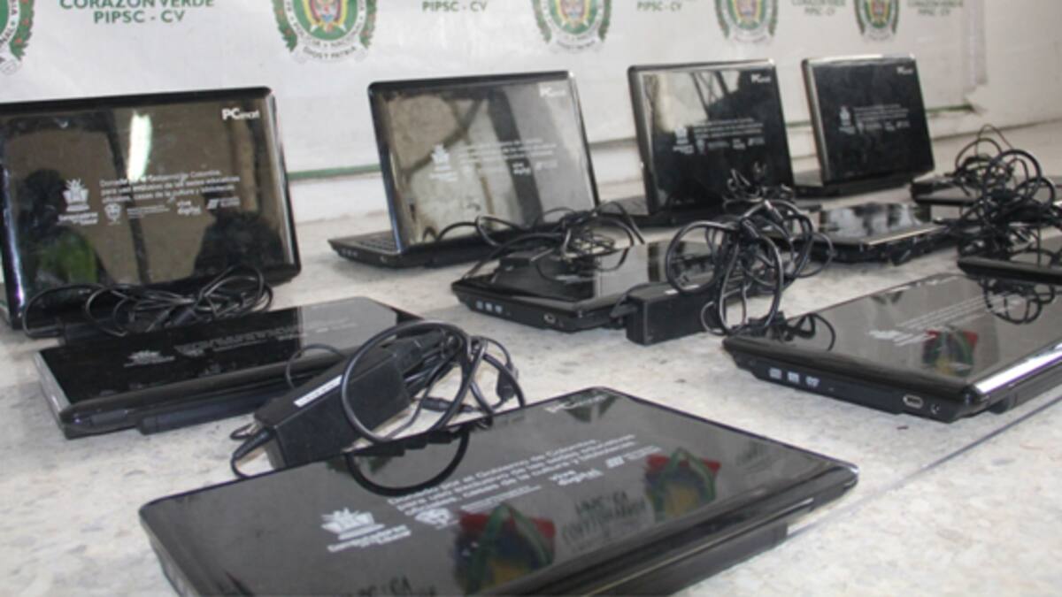 'Una vez que se conoció el hurto de los computadores en el municipio de Candelaria en horas de la madrugada de hoy, se dispuso de un operativo policial el cual terminó en la recuperación de los mismos cuando eran transportados por dos delincuentes quienes traían los equipos de computo camuflados en bolsos y maletas de viajes', indicó la Policía en un comunicado.