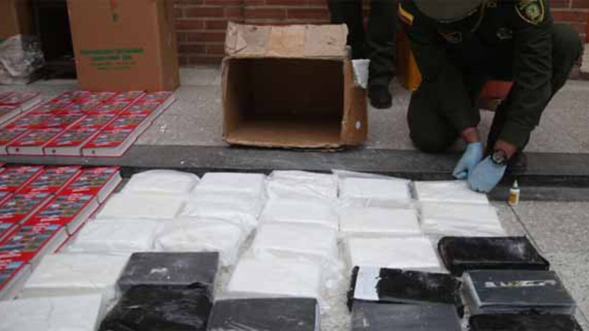 En el área de carga del aeropuerto internacional 'Eldorado' de Bogotá la policía logró la incautación de 36 kilos de clorhidrato de cocaína que iban hacia Ciudad de México en México.