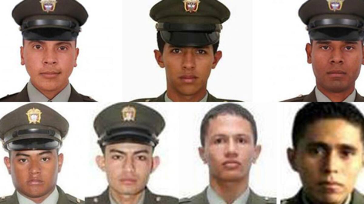Los policías muertos fueron identificados como: Luis Garcés, natural de Medellín; Carlos Jiménez, de Popayán; Julián Henao, de Itagüí; John Luis Barrios, de Barranquilla; Rafael Becerra, de Cúcuta; Edgar Becerra, de Pamplona; y Miguel Espitia, de Montería.