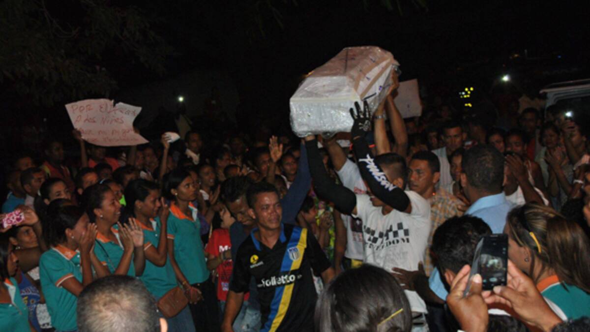 A las 7 de la noche del martes comenzó el cortejo fúnebre, que recorrió la avenida Francisco De Paula. Con gritos, los dolientes rechazaron la forma como fue encontrado el cuerpo del menor: descompuesto y tapado con hojas de plátano.