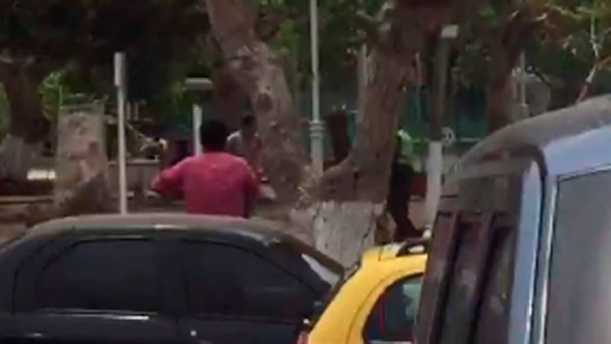 En video quedó registrado el momento en que se dispara, presuntamente, el arma de un policía en medio de lo que parece ser un forcejeo con un joven en el parque Eugenio Macías , en el norte de Barranquilla.