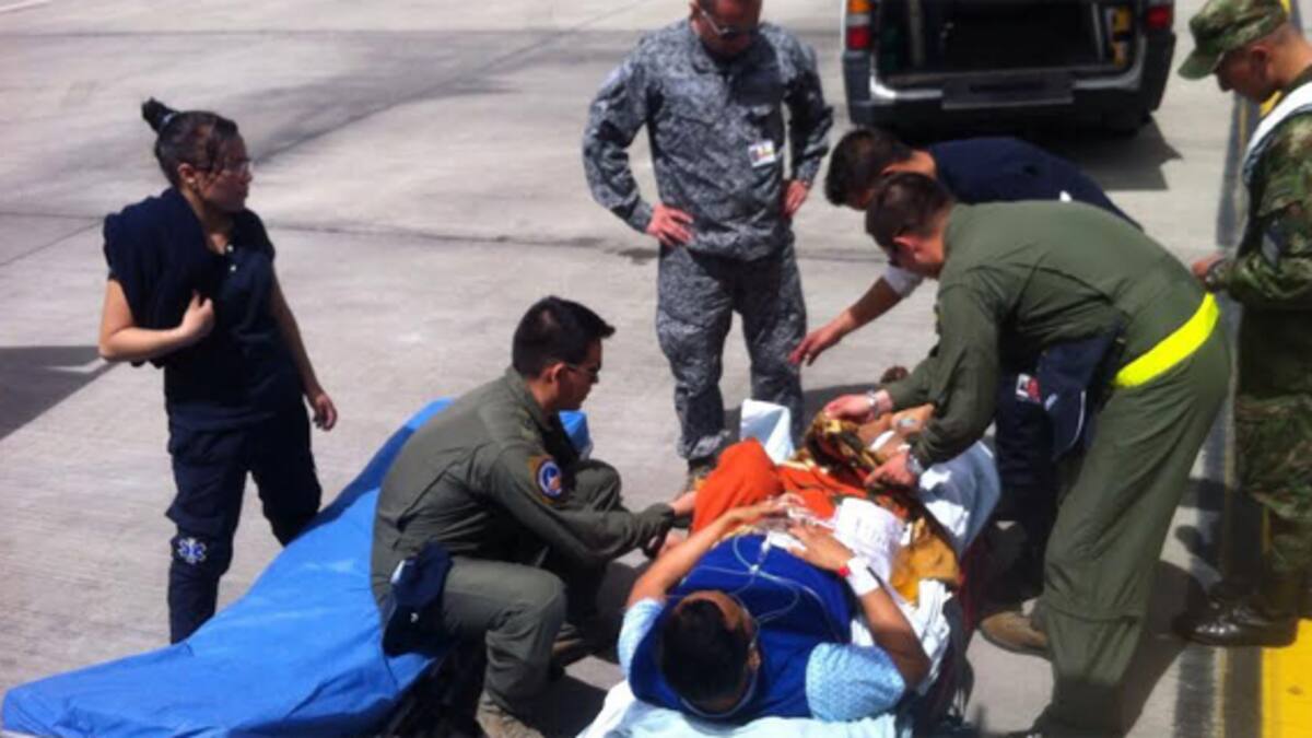 Durante las casi tres horas de vuelo, el personal de medicina de aviación del Comando Aéreo de Combate No. 3, de Malambo, le brindó asistencia médica para la estabilización de la fractura, mantenimiento de oxígeno y manejo del dolor hasta arribar a la capital.