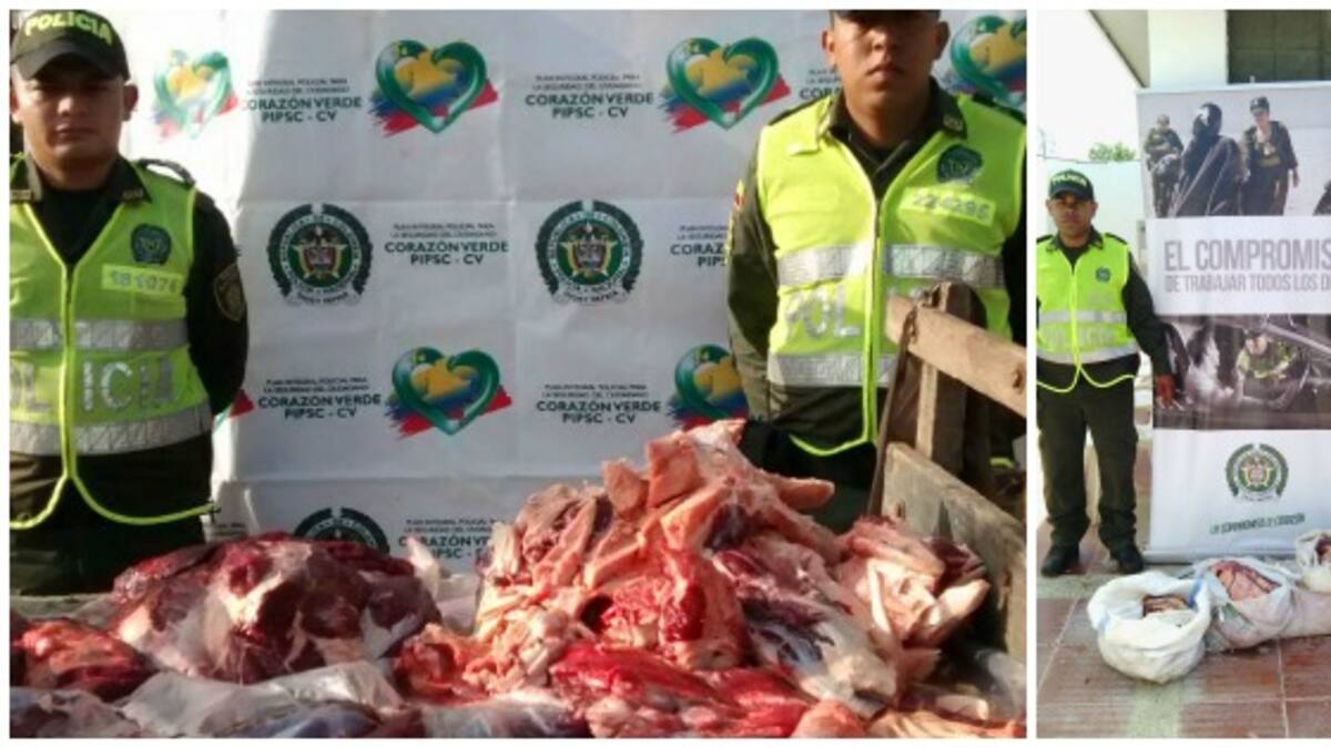 Unidades de la Policía del Atlántico incautaron 100 libras de carne de res, 30 libras de costillas y 50 libras de hueso, que transportaba un adulto mayor en un carro de mula.