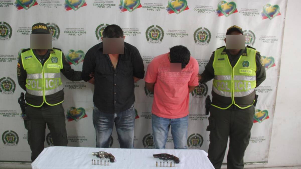 Este miércoles, en un sector del barrio San Roque, dos hombres fueron detenidos por el porte ilegal de dos armas de fuego y munición. Los nombres de los capturados son Eduven David Julio Gracia, de 26 años de edad y Nelson Gómez Gómez, de 43 años de edad.
