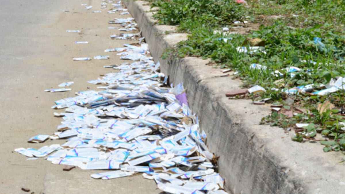 Vecinos del barrio Montes dieron a conocer que inexplicablemente encontraron los empaques vacíos regados sobre el andén y el pavimento.