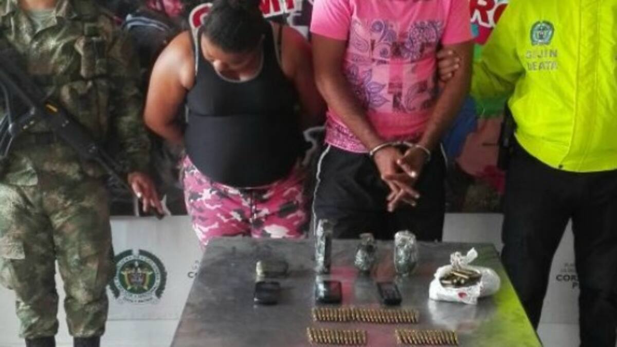 Agentes de la Sijin del Atlántico en coordinacion con el Ejercito, capturaron en Sabanalarga a un hombre y a una mujer que tenían en su poder 3 granadas de fragmentación.