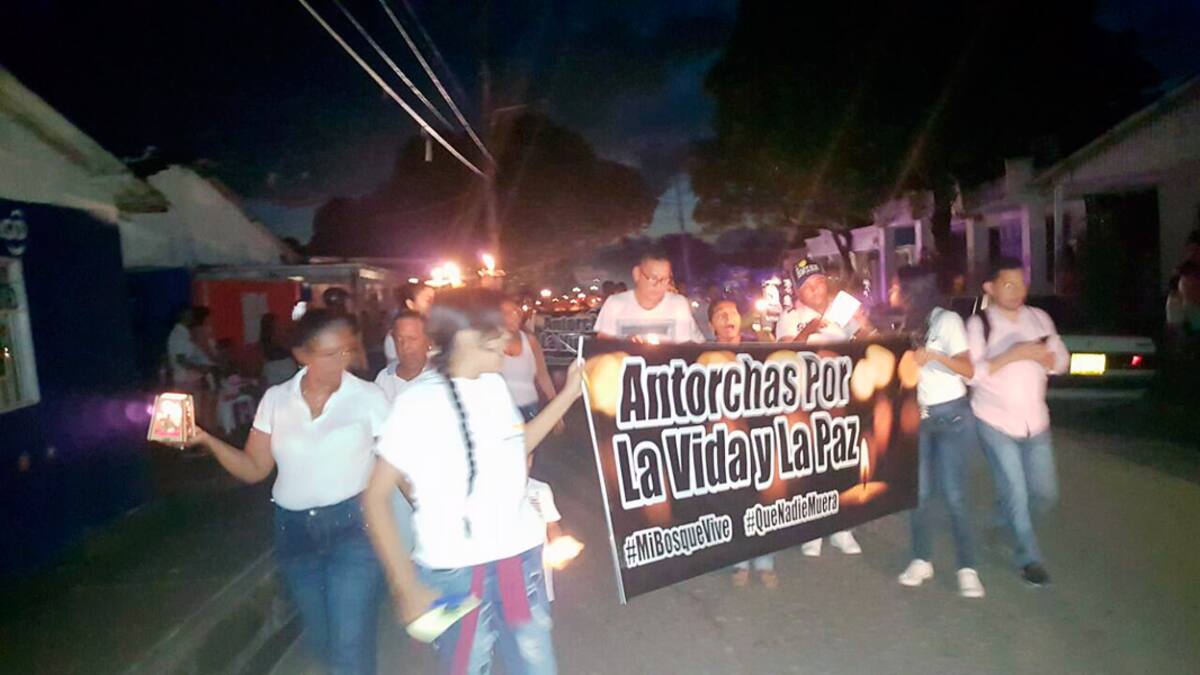 Unas 400 personas participaron de la marcha ‘Antorchas por la Vida y la Paz’, en la calle 64 con carrera 9B, frente al Hospital Bosque Caminos de María.
