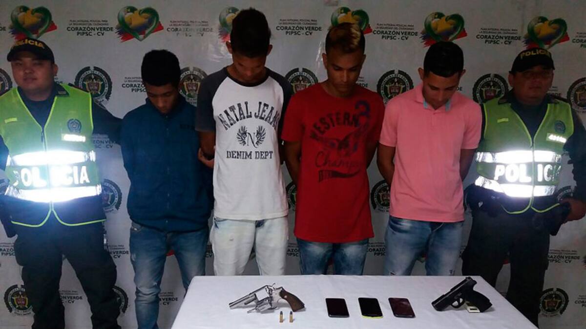 Cuatro hombres fueron capturados por la Policía en el kilómetro 5 de la antigua vía hacia Puerto Colombia, luego de intimidar con un arma de fuego a varias personas y hurtarles sus pertenencias.