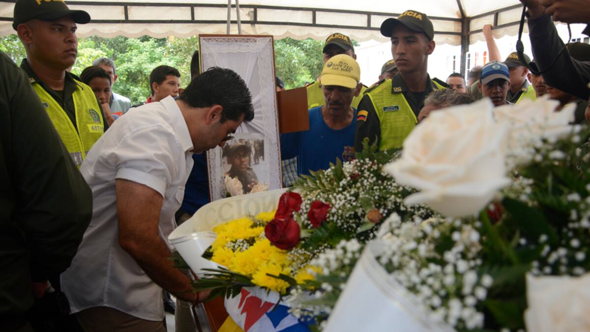 'Estamos muy dolidos y con el corazón partido porque era un bebé de 21 años que decide escoger la profesión de policía para salvar al resto de los colombianos, un bebé como ese se lo lleva el destino', dijo el primer mandatario.