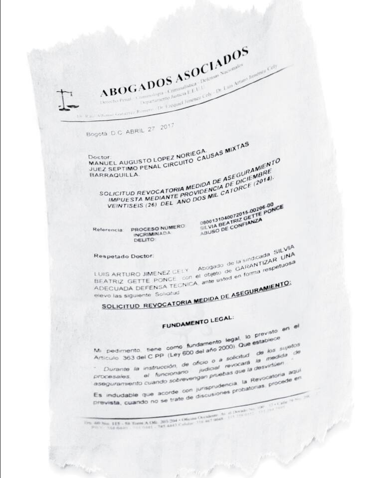 EL HERALDO conoció una solicitud de la exrectora, fechada el pasado 27 de abril, en la que pide que se le revoque la medida de aseguramiento impuesta en su contra el 26 de diciembre de 2014 por presunta corrupción mientras dirigía la Universidad Autónoma del Caribe.