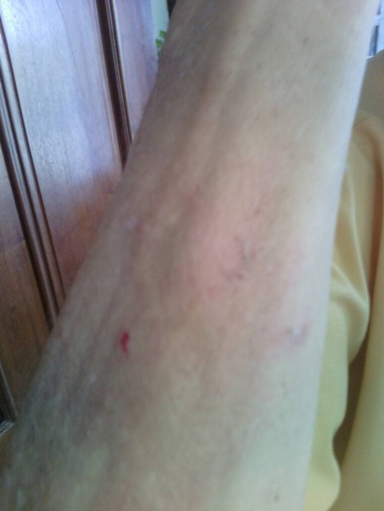 La víctima relató que cuando intentó cerrar la puerta, su agresora estrelló esta contra su humanidad, causándole heridas en el antebrazo.