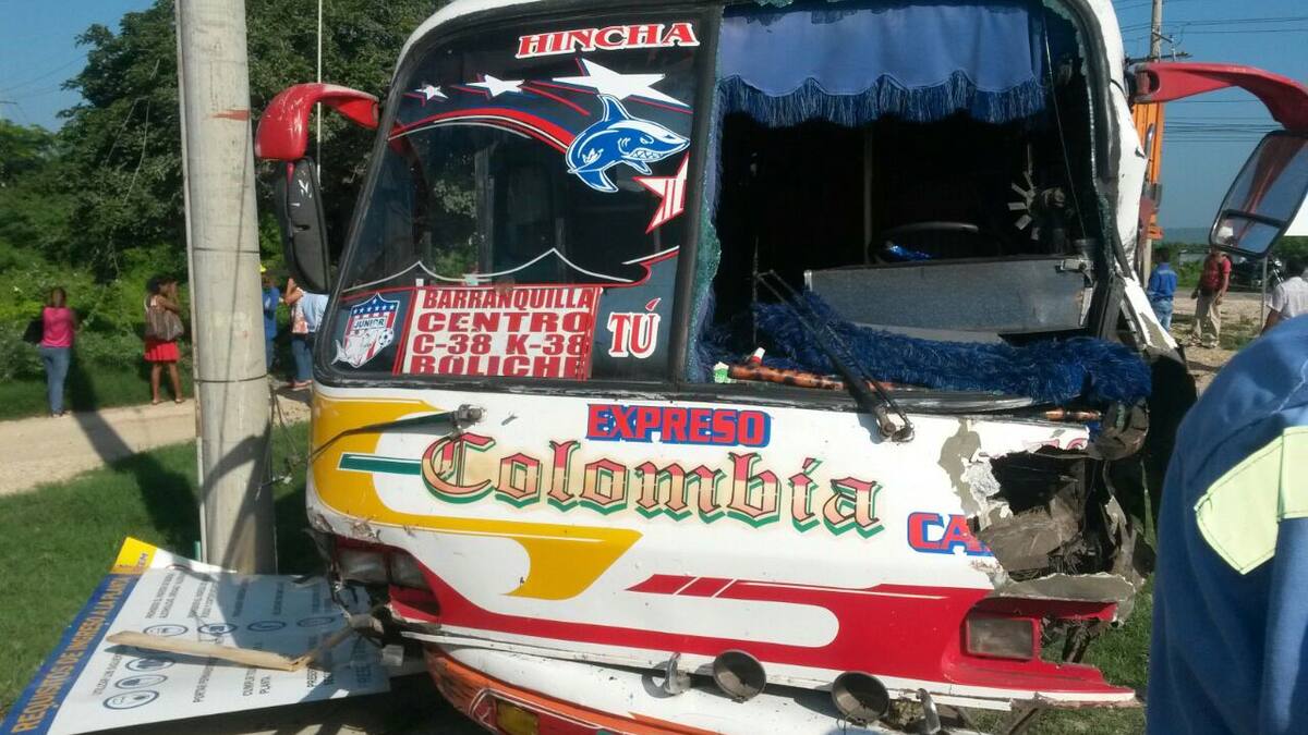 'Veníamos de Luruaco y cuando pasamos por Galapa, cerca de la empresa Ultracem, veo que la mula invade mi carril sin poner direccionales, por lo que me obligó a esquivarlo, sin embargo alcanzamos a chocarnos', dijo Mauricio Polo, conductor del bus afiliado a la empresa Expreso Puerto Colombia.