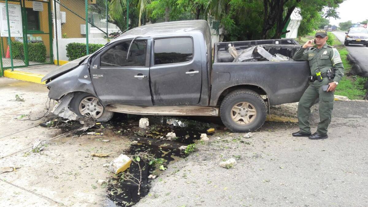 La camioneta chocó contra un muro y luego terminó en una cuneta a un lado de la vía.