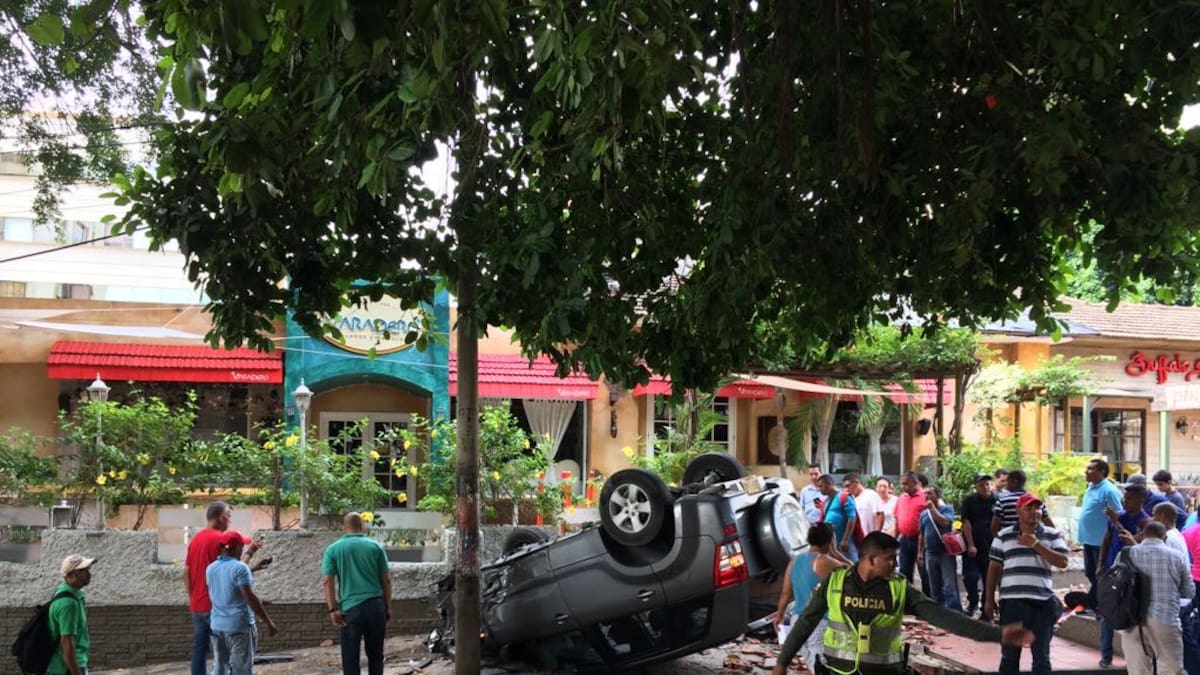 'Lo que me dicen es que mi papá al parecer se asustó luego de golpear al otro carro, y en vez de frenar lo que hizo fue acelerar', expresó Jairo Iriarte. La Grand Vitara dio dos vueltas antes de quedar montado muy cerca de la terraza de un restaurante.