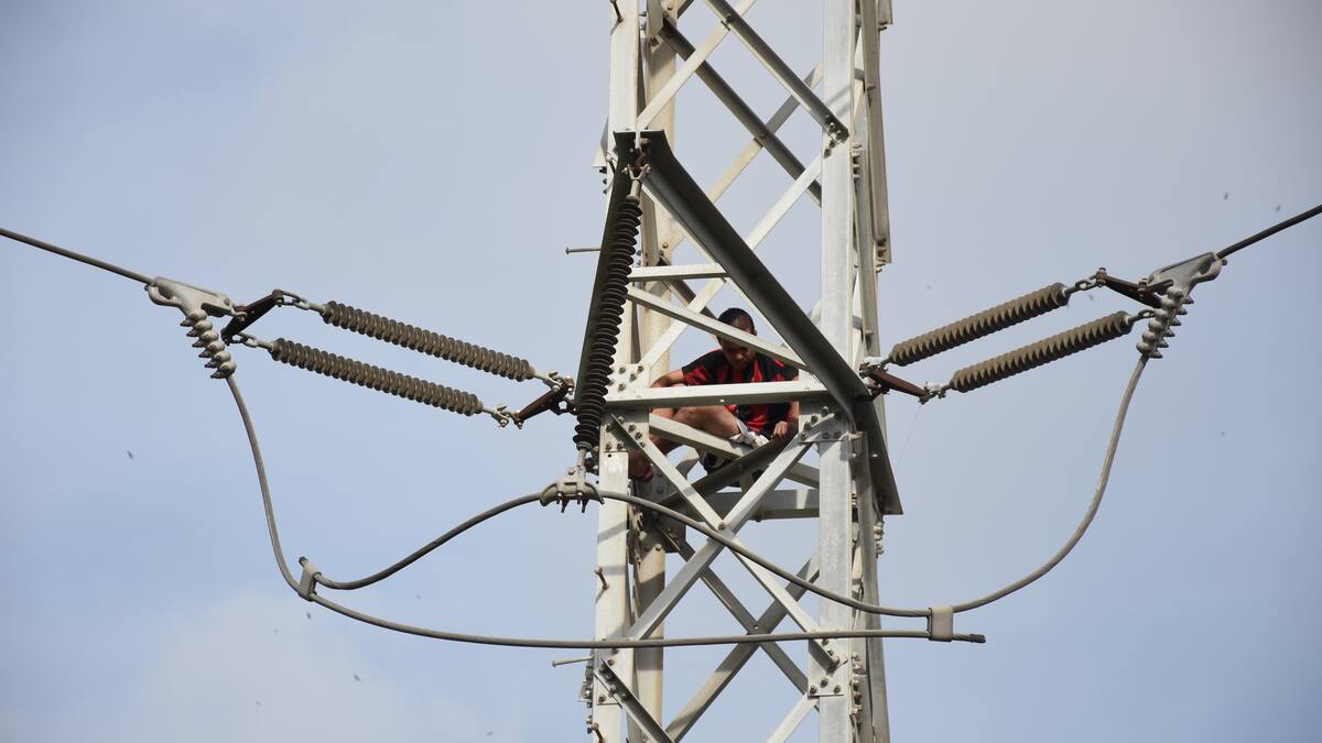 Dos horas permaneció un hombre sobre una torre de energía que está ubicada en la entrada de la Sociedad Portuaria.