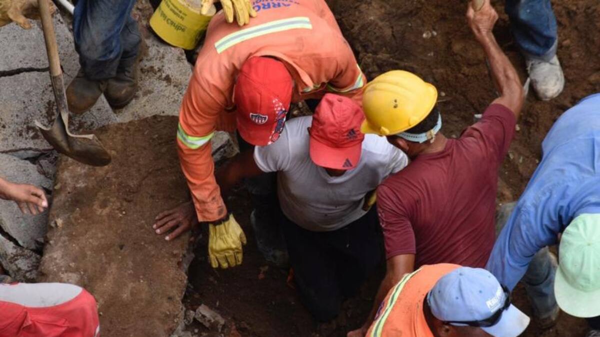 En una cámara de seguridad quedó registrada la emergencia que se presentó en horas de la tarde del pasado viernes, cuando los trabajadores realizaban labores de excavación.
