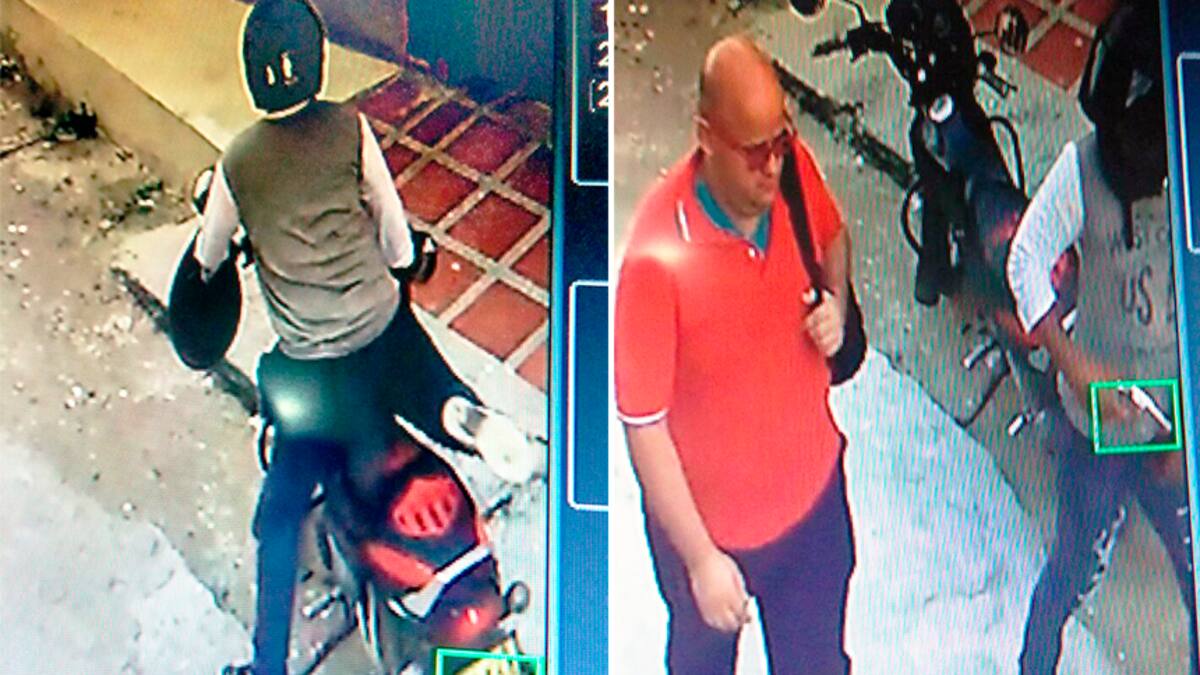 En el primer video se aprecia como un sujeto a bordo de una moto intercepta a un hombre de camisa roja y le roba sus pertenencias mientras lo intimida con un arma de fuego.
