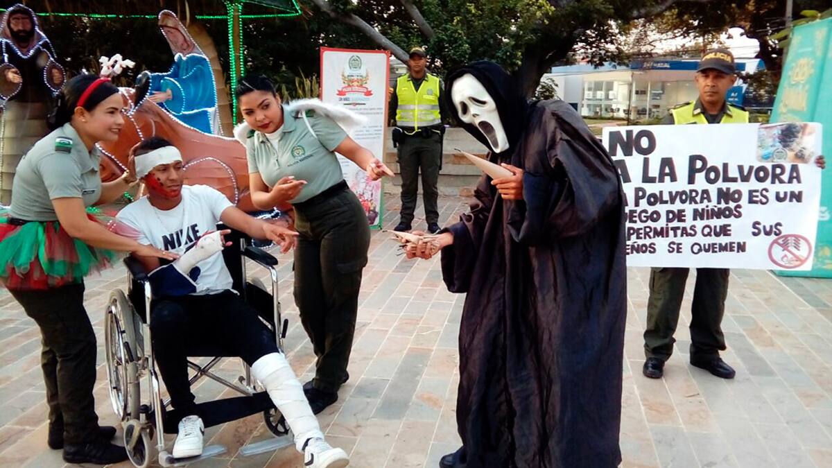 Con una llamativa campaña realizada ayer en el Paseo Bolívar de Barranquilla, la Unidad de Infancia y Adolescencia de la Policía Metropolitana y la Personería Distrital reiteraron su compromiso para evitar que niños y adultos resulten quemados o intoxicados con pólvora en este último mes del año.