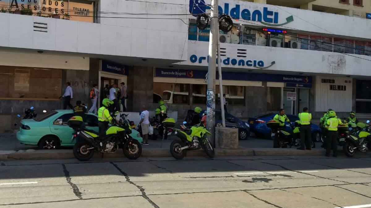 Delincuentes en dos motocicletas asaltaron la tarde de este miércoles la sede del Banco de Bogotá situada en la calle 53 con carrera 46.