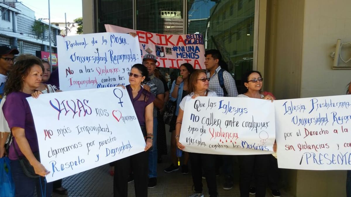 'Seremos diez, cien y mil más Gabrielas gritando nunca más', gritan los manifestantes a viva voz.