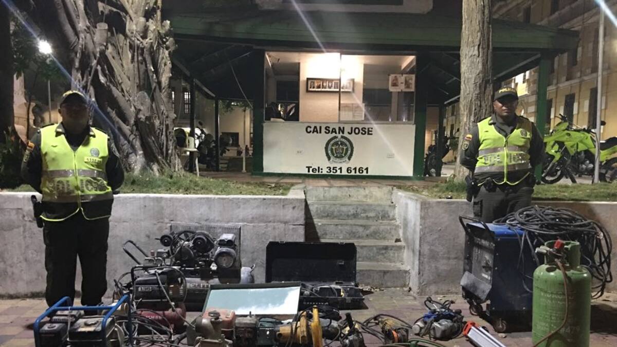 Entre los elementos recuperados figuran dos motodemoledores, un equipo de oxicorte, además de un rollo de cable, trípode, percutor, dos pulidoras, dos compresores, vibrador de concreto. En total, estos elementos están avaluados en $90 millones.