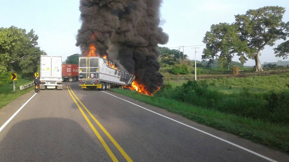 Usuarios del servicio wasapea a EL HERALDO informaron que el choque se produjo en horas de la mañana de este martes. Al parecer, la explosión de una llanta de uno de los vehículos pesados hizo que invadiera el carril contrario y colisionara de frente con el otro.