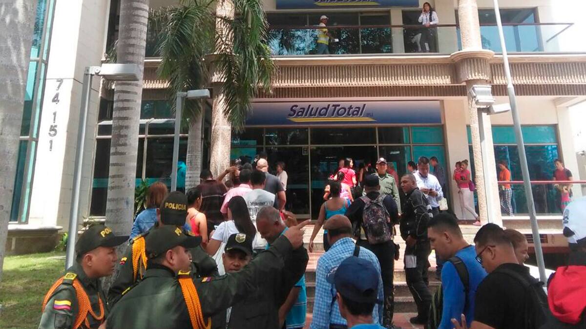 Fueron alertadas las autoridades quienes recomendaron evacuar tanto el edificio de Salud Total como la Secretaría de Movilidad de Barranquilla y una sucursal de Tigo.