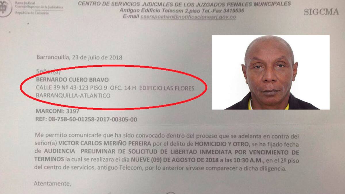 Como insólito, aunque podría tratarse de un error, han calificado personas cercanas al proceso del líder social asesinado Bernardo Cuero Bravo el hecho de que este haya sido citado para comparecer en la diligencia de libertad por vencimiento de términos de quien sería su asesino, el procesado Víctor Carlos Meriño Pereira.