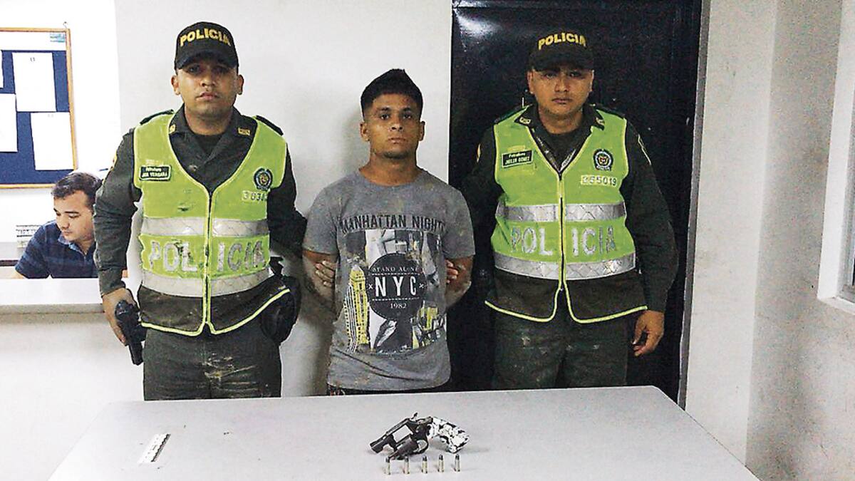 Según la Policía, esta vez el joven cayó nuevamente por porte ilegal de arma de fuego, pues, tras una requisa, se le halló un revólver calibre 38 con cinco cartuchos.