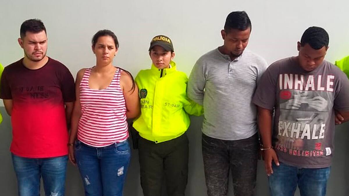 Los señalados delincuentes fueron identificados como Leonardo Fabio Rivera Vanegas, alias el Nene; Deivis Gutiérrez Patiño, alias el Caleño; Sandra Milena Areiza Quicena, José Fernando Flórez Mendoza y Eligio Manuel Estrada Nieto, alias Mono liso, quienes deberán responder por los delitos de hurto calificado agravado, concierto para delinquir y fraude procesal.