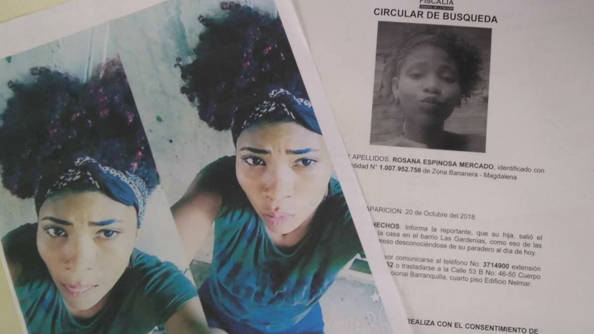 La última solicitud la hizo este miércoles en la sede de la Unidad de Búsqueda de Personas Desaparecidas de la Fiscalía. Allí volvió a reportar la desaparición de Rosana Espinosa Mercado, como se llama su hija, y señaló a los investigadores que ella salió el 'sábado 20 de octubre de Las Gardenias y no regresó, desconociéndose hoy su paradero'.