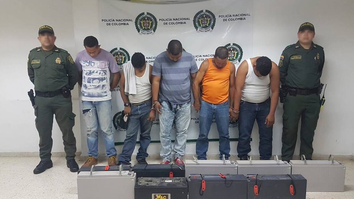 La Policía recuperó ocho baterías y un controlador marcado con el logo de la compañía, todo avaluado en $8 millones. Los elementos fueron devueltos a los dueños y los capturados quedaron a disposición de la Fiscalía.