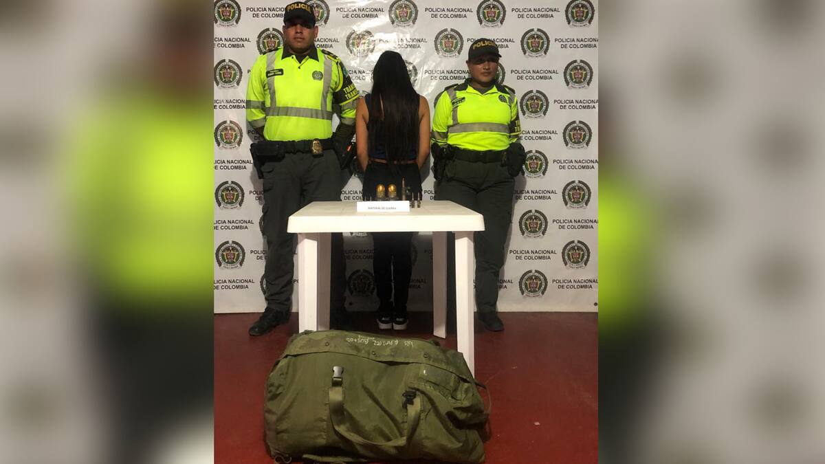 La Policía capturó este viernes a una joven de 18 años que se transportaba en un bus intermunicipal con dos granadas, dos cartuchos calibre 50, dos cartuchos calibre 7.62 y tres calibre 5.56, un morral tipo militar y prendas militares.