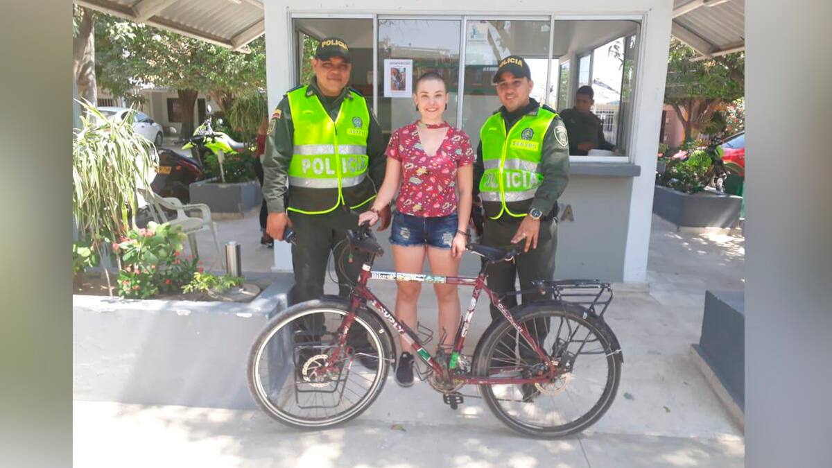 Solo escasos minutos tardaron los policías del CAI del barrio La Chinita en recuperar la bicicleta de la extranjera Sarah Stark, quien fue atracada en la mañana de este lunes por delincuentes comunes cuando se desplazaba hacia la salida Barranquilla-Ciénaga.