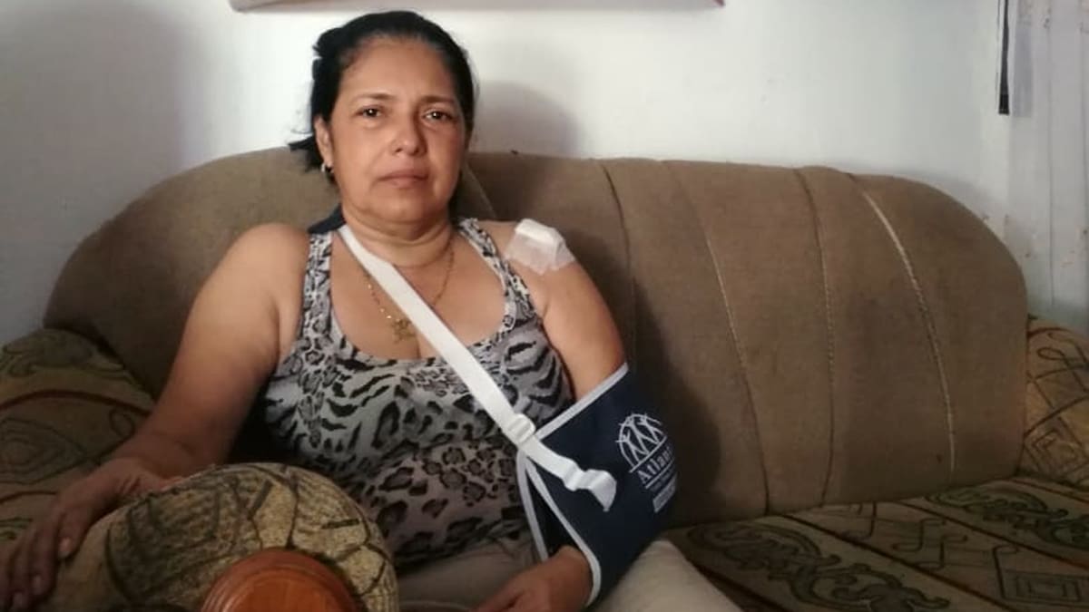 Sentada en un sofá y con el brazo sostenido con un cabestrillo, Neyla Isabel Vásquez Carrillo, la madre de Julieth Gómez Vásquez, fallecida en un ataque sicarial ocurrido el lunes anterior en Los Robles de Soledad, hoy trata de aclarar algunas versiones que surgieron tras el hecho.