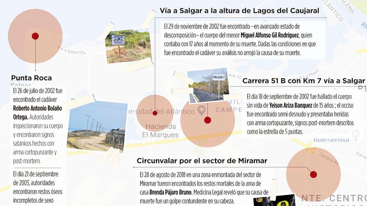 Por ejemplo, en los casos de Roberto Antonio Bolaños Ortega, asesinado en 26 de julio de 2002; el de Aida Rocío Antolinez Lizarazo, asesinada el 21 de septiembre de 2003 y Yilibeth Yirina Majarrés Almarales, todos fueron ubicados en el sector de Punta Roca, jurisdicción de Puerto Colombia (Atlántico).
