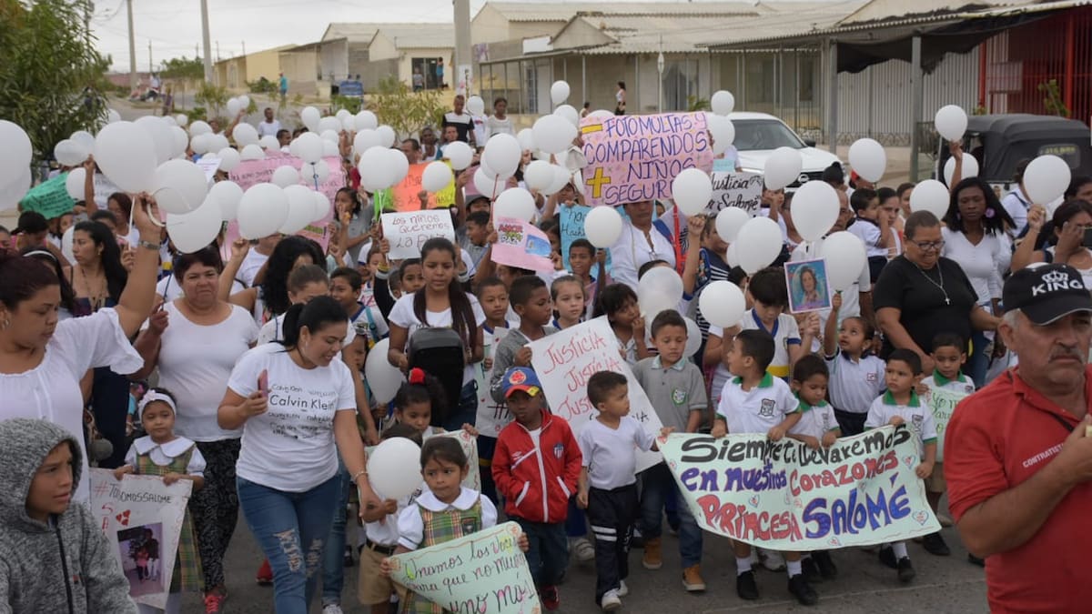 A las 8 de la mañana de este viernes partió desde el Jardín Infantil San Rafael Arcángel ubicado en la calle 64 con carrera 2, en Villa Olímpica del municipio de Galapa, una multitud exigiendo que se haga justicia por la muerte de la niña Salomé Jiménez Mendoza.