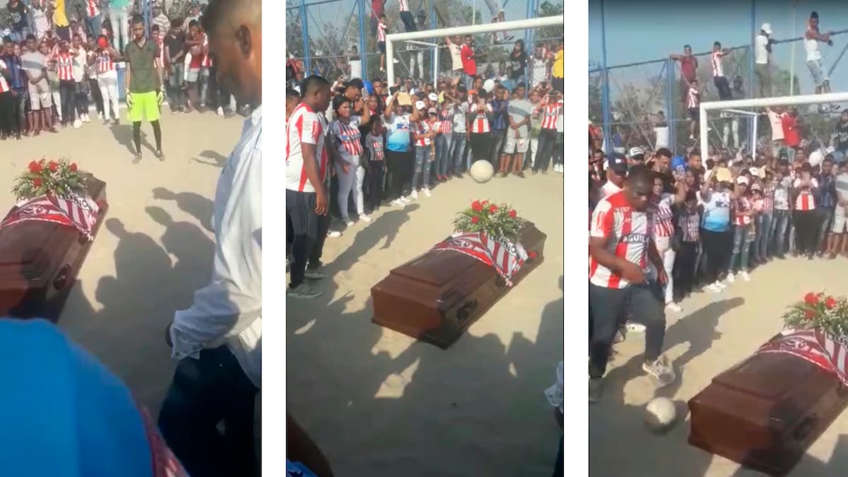 Una mujer que estaba en el sitio exclamó: 'no le den al cajón', pero uno de los jóvenes que hacía parte del inusual tributo respondió: 'Sí, hay que darle, ¿él no jugaba?...'.