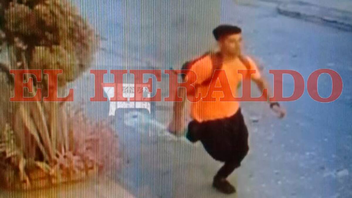 La imagen es de una cámara de seguridad del sector donde ocurrió el homicidio, barrio Libertador, en esa localidad cercana a Barranquilla. El tipo corre a toda prisa, va vestido con camiseta salmón, pantalón negro y porta un morral en la espalda. De acuerdo con el horario que muestra la toma de pantalla en poder de los investigadores judiciales, en ese momento ya se había consumado el crimen; y el sospechoso trata de alejarse lo más pronto posible de la escena.